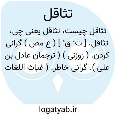 تثاقل. [ ت َ ق ُ ] ( ع مص ) گرانی کردن. ( زوزنی ) ( ترجمان عادل بن علی ). گرانی خاطر. ( غیاث اللغات ) ( آنندراج ). کاهلی کردن و پس ماندن از آن و خویشتن را گران ساختن. ( منتهی الارب ) ( ناظم الاطباء ): تثاقل عنه ثقل و تباطاء. ( قطر المحیط ). گرانی نمودن. ( از اقرب الموارد ). || چیزی را با سنگینی لگدمال کردن. ( از اقرب الموارد ). || بددلی کردن قوم در جنگ. ( منتهی الارب ) ( ناظم الاطباء ). گرانی کردن قوم هنگام یاری خواستن از ایشان. ( از قطر المحیط ). || گرانبار شدن. ( غیاث اللغات ).