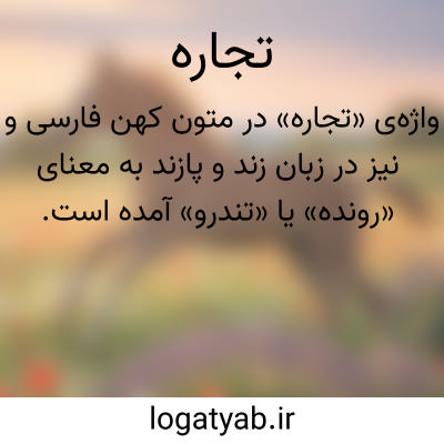 واژهی «تجاره» در متون کهن فارسی و نیز در زبان زند و پازند به معنای «رونده» یا «تندرو» آمده است. در اشعار شاعران بزرگی چون فرخی و فخرالدین گرگانی این کلمه برای وصف اسب یا رفتار به کار رفته و بیشتر بار معنایی حرکت سریع و شتابنده را القا میکند.