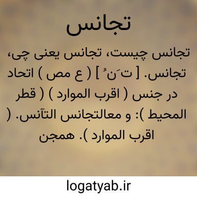 ۱- ( مصدر ) همجنسی داشتن همرنگ بودن. ۲- ( اسم ) همجنسی همرنگی:(( میان ما تجانس اخلاقی نیست. ) ) جمع: تجانسات.