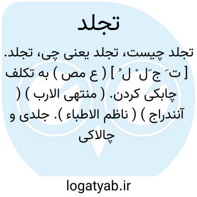 ۱- مصدر ) چابکی نمودن چالاکی کردن. ۲- ( اسم ) چابکی دلیری جلدی. جمع: تجلدات.