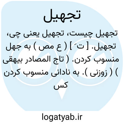 تجهیل. [ ت َ ] ( ع مص ) به جهل منسوب کردن. ( تاج المصادر بیهقی ) ( زوزنی ). به نادانی منسوب کردن کسی را. ( منتهی الارب ) ( آنندراج ) ( ناظم الاطباء ) ( از اقرب الموارد ) ( از قطر المحیط ).
