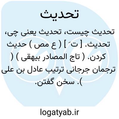تحدیث. [ ت َ ] ( ع مص ) حدیث کردن. ( تاج المصادر بیهقی ) ( ترجمان جرجانی ترتیب عادل بن علی ). سخن گفتن. ( منتهی الارب ) ( آنندراج ) ( ناظم الاطباء ). تحدیث کسی چیزی را یا به چیزی؛ خبر دادن او را. ( اقرب الموارد ) ( قطر المحیط ). || تحدیث فلان از فلان؛ روایت کردن از او. ( اقرب الموارد ) ( قطر المحیط ). || تحدیث در لغت بمعنی اِخبار است. و نزد محدثان اِخبار است بمعنی خاص، یعنی اخبار به حدیثی که راوی بلفظ شیخ از او شنیده و این معنی نزد محدثان مشرق و پیروان آنان شایع بود، اما محدثان مغرب را چنین اصطلاحی نیست بلکه نزد آنان اخبار و تحدیث را یک معنی است و بنابرآنچه شایع است تحدیث شیخ شنیدن حدیث است از شیخ و اخبار، خواندن حدیث بود بر شیخ. و رجوع به کشاف اصطلاحات الفنون شود. || تحدیث نفس به چیزی؛ امرکردن بدان. ( از منتهی الارب ): حدثته نفسه بکذا؛ یعنی امر کرد او را نفس وی به این کار. ( ناظم الاطباء ).
