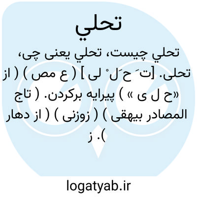 تحلی. [ت َ ح َل ْ لی ] ( ع مص ) ( از «ح ل ی » ) پیرایه برکردن. ( تاج المصادر بیهقی ) ( زوزنی ) ( از دهار ). زیور پوشیدن و آراسته شدن. ( آنندراج ). بازیور شدن زن و مستفید گردیدن به آن و پوشیدن زیور و آراسته شدن. ( منتهی الارب ) ( ناظم الاطباء ) ( از اقرب الموارد ) ( از قطر المحیط ).