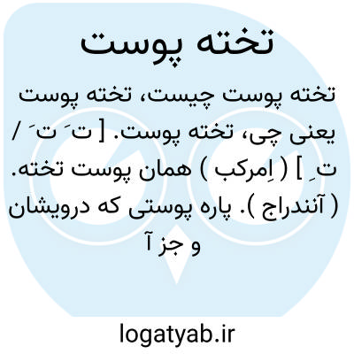 تخته پوست. [ ت َ ت َ / ت ِ ] ( اِمرکب ) همان پوست تخته. ( آنندراج ). پاره پوستی که درویشان و جز آنان با خود دارند زیرانداز را. تخته ای ازپوست گوسفند که بر آن نشینند و خوابند: