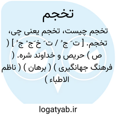 تخجم. [ ت َ ج ُ / ت َ خ َج ْ ج ُ ] ( ص ) حریص و خداوند شره. ( فرهنگ جهانگیری ) ( برهان ) ( ناظم الاطباء ) ( لسان العجم شعوری ج 1 ورق 285 ). رشیدی آرد: بفتحتین و ضم جیم تازی مشدد؛ حریص و خداوند شره. خاقانی گوید بیت: