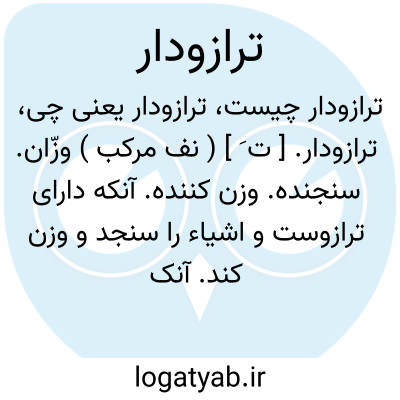 ترازودار. [ ت َ ] ( نف مرکب ) وزّان. سنجنده. وزن کننده. آنکه دارای ترازوست و اشیاء را سنجد و وزن کند. آنکه چیزها را در ترازو کشد و تعیین وزن آنها کند. ترازوسنج:
