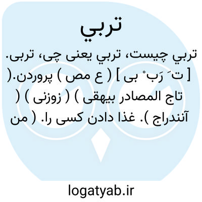 تربی. [ ت َ رَب ْ بی ] ( ع مص ) پروردن.( تاج المصادر بیهقی ) ( زوزنی ) ( آنندراج ). غذا دادن کسی را. ( منتهی الارب ) ( ناظم الاطباء ). غذا دادن کودک را تا رشد کند. || تهذیب کودک. ( المنجد ).
