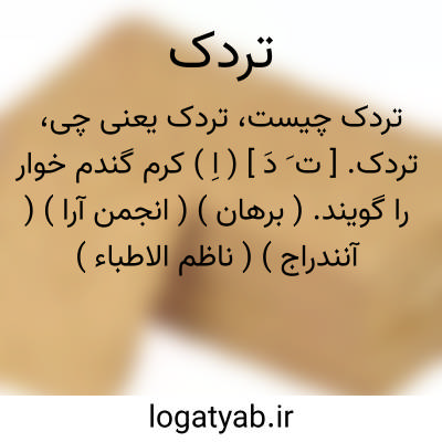 تردک. [ ت َ دَ ] ( اِ ) کرم گندم خوار را گویند. ( برهان ) ( انجمن آرا ) ( آنندراج ) ( ناظم الاطباء ) ( از فرهنگ جهانگیری ) ( از فرهنگ رشیدی ). و به این معنی با زای فارسی هم آمده است. ( برهان ). رجوع به تژدک شود. بعضی ببای عجمی و زای منقوطه گفته اند. ( فرهنگ رشیدی ). رجوع به پزدک و تزدک شود.