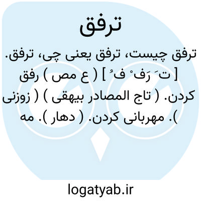 ۱- ( مصدر ) نرمی کردن مهربانی نمودن. ۲- همراهی کردن. ۳- ( اسم ) نرمی مهربانی. ۴- همراهی رفاقت. جمع: ترفقات.