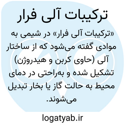 عبارت «ترکیبات آلی فرار» در شیمی به موادی گفته می‌شود که از ساختار آلی (حاوی کربن و هیدروژن) تشکیل شده و به‌راحتی در دمای محیط به حالت گاز یا بخار تبدیل می‌شوند. این واژه از ترکیب «ترکیبات آلی» به معنای مواد شیمیایی با پایه کربنی و «فرار» به معنای قابل تبخیر بودن شکل گرفته است. ترکیبات آلی فرار معمولاً شامل الکل‌ها، آلدهیدها، کتون‌ها، استرها و هیدروکربن‌های سبک هستند. این مواد می‌توانند از منابع طبیعی مانند گیاهان و مواد غذایی یا از فرآیندهای صنعتی منتشر شوند. از نظر محیط‌زیستی و بهداشتی، ترکیبات آلی فرار می‌توانند موجب آلودگی هوا، بوی ناخوشایند و مشکلات تنفسی شوند. در صنایع، این ترکیبات کاربردهای گسترده‌ای دارند، از جمله در عطرسازی، رنگ‌ها، حلال‌ها و محصولات شوینده. ویژگی فرار بودن باعث می‌شود این مواد سریع تبخیر شوند و به راحتی وارد هوا شوند، که گاهی خطرناک و قابل اشتعال است. در آزمایشگاه‌ها و صنایع، کنترل میزان ترکیبات آلی فرار اهمیت زیادی دارد تا سلامت انسان و محیط زیست حفظ شود.