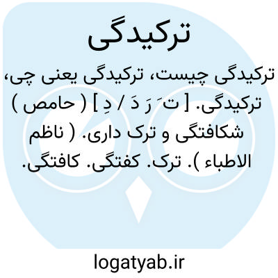 ترکیدگی. [ ت َ رَ دَ / دِ ] ( حامص ) شکافتگی و ترک داری. ( ناظم الاطباء ). ترک. کفتگی. کافتگی. غاچ. شکاف. شکافتگی: ترکیدگی لب، شقاق الشفه. ترکیدگی مقعد، شقاق المقعد. و رجوع به ترکیدن شود.