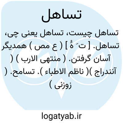 تساهل. [ ت َ هَُ ] ( ع مص ) همدیگر آسان گرفتن. ( منتهی الارب ) ( آنندراج )( ناظم الاطباء ). تسامح. ( زوزنی ) ( متن اللغة ). تلاین و تسامح. ( اقرب الموارد ) ( المنجد ). || تساهل امر بر چیزی ضد تعاسر بر آن است. ( از اقرب الموارد ). || تساهل در عبارت، ادای لفظی است آنچنانکه دلالت صریحی بمقصود نکند. ( از تعریفات جرجانی ).
