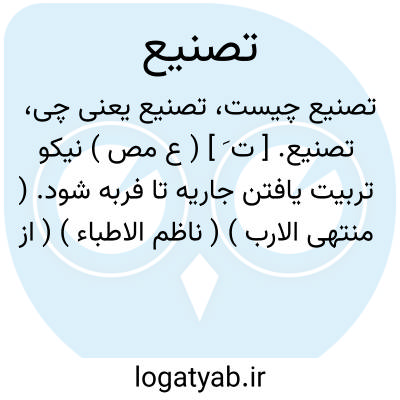 تصنیع. [ ت َ ] ( ع مص ) نیکو تربیت یافتن جاریه تا فربه شود. ( منتهی الارب ) ( ناظم الاطباء ) ( از اقرب الموارد ). و از این معنی است: تصنیع الشی لتحسینه و تزیینه بالصناعة. ( اقرب الموارد ).
