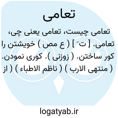 تعامی. [ ت َ ] ( ع مص ) خویشتن را کور ساختن. ( زوزنی ). کوری نمودن. ( منتهی الارب ) ( ناظم الاطباء ) ( از اقرب الموارد ). خود را کور نمودن. ( آنندراج ). کوری را بخود بستن. ( ناظم الاطباء ).