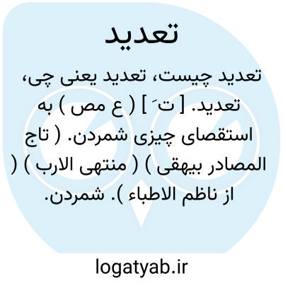 ۱ -( مصدر ) شمردن شمار کردن. ۲ - ( اسم ) شمارش. جمع: تعدیدات.