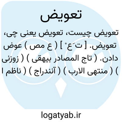تعویض. [ ت َع ْ ] ( ع مص ) عوض دادن. ( تاج المصادر بیهقی ) ( زوزنی ) ( منتهی الارب ) ( آنندراج ) ( ناظم الاطباء ). عوض کردن. ( آنندراج ). بدل دادن. ( از اقرب الموارد ): عوضته ُ من هبته خیراً. ( اقرب الموارد ): و احسن امیرالمؤمنین انتقاله الی دارالقرار لعلمه بتعویض اﷲ... ( تاریخ بیهقی چ ادیب ص 300 ).