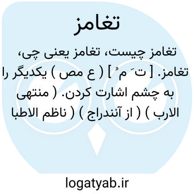 تغامز. [ ت َ م ُ ] ( ع مص ) یکدیگر را به چشم اشارت کردن. ( منتهی الارب ) ( از آنندراج ) ( ناظم الاطباء ). با یکدیگر بچشم اشارت کردن. ( ترجمان جرجانی ترتیب عادل بن علی ). اشاره کردن بعض قوم مر بعض دیگر را با چشمهای خود، یقال: تغامزوا به. ( از اقرب الموارد ). و منه قوله تعالی: و اذا مروا بهم یتغامزون. ( منتهی الارب ) ( ناظم الاطباء ).