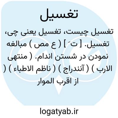 تغسیل. [ ت َ ] ( ع مص ) مبالغه نمودن در شستن اندام. ( منتهی الارب ) ( آنندراج ) ( ناظم الاطباء ) ( از اقرب الموارد ). || پاک گردانیدن گناه و جز آن: غسل اﷲ حوبک؛ ای طهرک. ( از اقرب الموارد ). || بسیار گاییدن. ( منتهی الارب ) ( آنندراج ) ( ناظم الاطباء ).