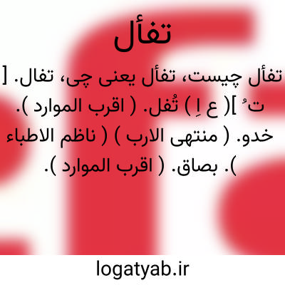 ( تفأل ) (تَ فَ أُ ) [ ع. ] ۱ - (مص م. ) فال زدن. ۲ - (اِمص. ) فال گویی، فال اندازی. ۳ - (اِ. ) فال، شگون. ج. تفألات.