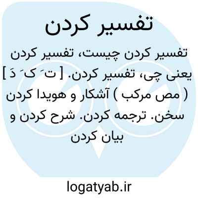 تفسیر کردن. [ ت َ ک َ دَ ] ( مص مرکب ) آشکار و هویدا کردن سخن. ترجمه کردن. شرح کردن و بیان کردن سخنی از زبانی بزبانی دیگر و یا توضیح کردن سخنی غامض را بزبانی روشن و آشکار: