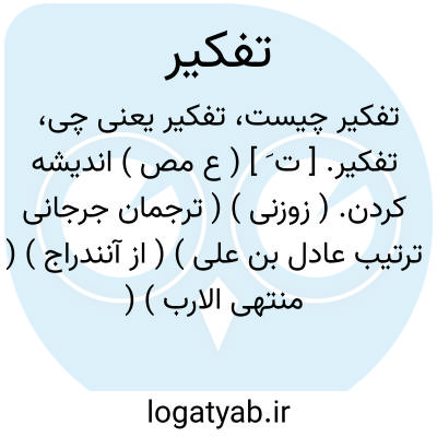 ۱ -( مصدر ) اندیشه کردن اندیشیدن. ۲ - ( اسم ) اندیشه. جمع: تفکیرات.