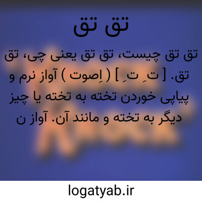تق تق. [ ت ِ ت ِ ] ( اِصوت ) آواز نرم و پیاپی خوردن تخته به تخته یا چیز دیگر به تخته و مانند آن. آواز نرم چکش در خانه، یا کوفتن در، با سر انگشت. ( یادداشت بخط مرحوم دهخدا ).