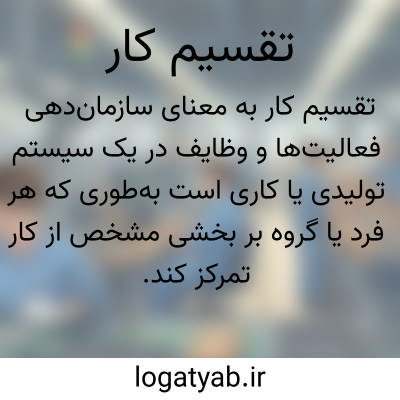 تقسیم کار به معنای سازماندهی فعالیتها و وظایف در یک سیستم تولیدی یا کاری است بهطوری که هر فرد یا گروه بر بخشی مشخص از کار تمرکز کند. این روش باعث میشود هر بخش به شکل تخصصی و مؤثر انجام شود و بهرهوری کلی افزایش یابد. به عبارت دیگر، به جای اینکه هر فرد همه مراحل تولید را انجام دهد، وظایف بین افراد تقسیم میشود تا هرکس در زمینه خاصی مهارت پیدا کند.