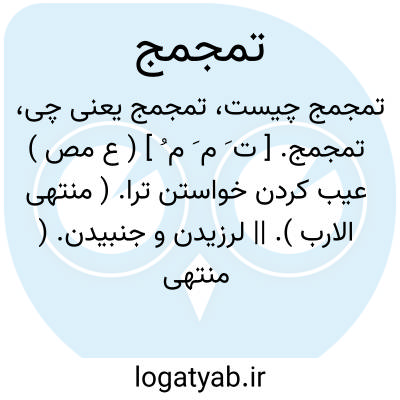 تمجمج. [ ت َ م َ م ُ ] ( ع مص ) عیب کردن خواستن ترا. ( منتهی الارب ). || لرزیدن و جنبیدن. ( منتهی الارب ) ( ناظم الاطباء ). لرزیدن کفل. ( از اقرب الموارد ).