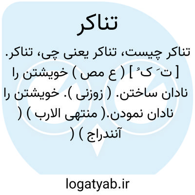 تناکر. [ ت َ ک ُ ] ( ع مص ) خویشتن را نادان ساختن. ( زوزنی ). خویشتن را نادان نمودن.( منتهی الارب ) ( آنندراج ) ( ناظم الاطباء ). تجاهل. ( اقرب الموارد ). || ناشناخته آوردن. ( منتهی الارب ) ( آنندراج ) ( ناظم الاطباء ). || ناشناختن. ( منتهی الارب ) ( آنندراج ) ( ناظم الاطباء ) ( از اقرب الموارد ): معن او را بوجه تناکر مدد نمود و کار خصم او بساخت منصور چون او را بشناخت از سر جرایم معهود او درگذشت. ( ترجمه تاریخ یمینی چ 1 تهران ص 446 ). || بر همدیگر دشمنی ورزیدن. ( منتهی الارب ) ( آنندراج ) ( ناظم الاطباء ) ( از اقرب الموارد ).