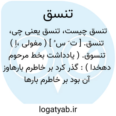 تنسق. [ ت َ س ُ ] ( مغولی،اِ ) تنسوق. ( یادداشت بخط مرحوم دهخدا ):