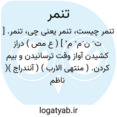 تنمر. [ ت َ ن َم ْ م ُ ] ( ع مص ) دراز کشیدن آواز وقت ترسانیدن و بیم کردن. ( منتهی الارب ) ( آنندراج )( ناظم الاطباء ) ( از اقرب الموارد ). || پلنگی نمودن. ( منتهی الارب ) ( آنندراج ) ( ناظم الاطباء ). تشبه به پلنگ در خلق و رنگ. ( از اقرب الموارد ). || در خشم شدن چون پلنگ. ( زوزنی از یادداشت بخط مرحوم دهخدا ). خشم گرفتن و زشتخوی شدن. ( منتهی الارب )( آنندراج ) ( ناظم الاطباء ): بر حول و قوت خویش اعتماد کرد و از عواقب خطر و تهور و خواتیم بغی و تنمر غافل ماند. ( ترجمه تاریخ یمینی چ 1 تهران ص 197 ). || دگرگون گشتن و متغیر شدن، یقال: تنمر له؛ تشبیه است به پلنگ، بدان جهت که پلنگ دیده نشود مگر آنکه از خشم متغیر و برگردیده باشد. ( منتهی الارب ) ( ناظم الاطباء ) ( آنندراج ) ( از اقرب الموارد ).