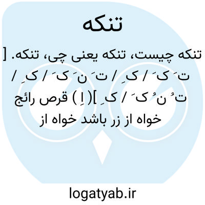 تنکه. [ ت َ ک َ / ک ِ / ت َ ن َ ک َ / ک ِ / ت ُ ن ُ ک َ / ک ِ ]( اِ ) قرص رائج خواه از زر باشد خواه از نقره یا مس.( غیاث اللغات ) ( آنندراج ) ( از فرهنگ فارسی معین ). برگه ای از هر فلزی و ورق طلا و ورق نقره و پول رایج و قسمی از سکه. ( ناظم الاطباء ). مقداری از زر و سیم باشدبه اصطلاح هر جایی... ( انجمن آرا ): معبر گفت دو تنکه بده تا تعبیر آن بگویم. ( منتخب لطائف عبید زاکانی چ برلین ص 125 ). رجوع به دزی ج 1 ص 153 شود.