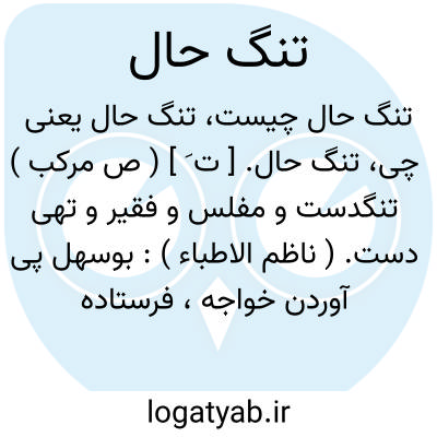 دانی لغت زبان لالان.نظامی.رجوع به تنگ حالی و تنگ و دیگر ترکیبهای آن شود.