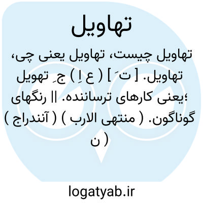 ( مصدر اسم ) جمع: تهویل. ۱ - ترسانیدنیها. ۲ - رنگهای مختلف از سرخ و زرد و سبز زینت تصویرها.