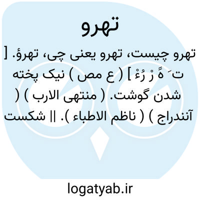 تهرؤ. [ ت َ هََ رْ رُءْ ] ( ع مص ) نیک پخته شدن گوشت. ( منتهی الارب ) ( آنندراج ) ( ناظم الاطباء ). || شکسته شدن چارپا از سرما. یقال: هراء الماشیة فتهرأت. ( لسان العرب از ذیل اقرب الموارد ). رجوع به تهرئة شود.
