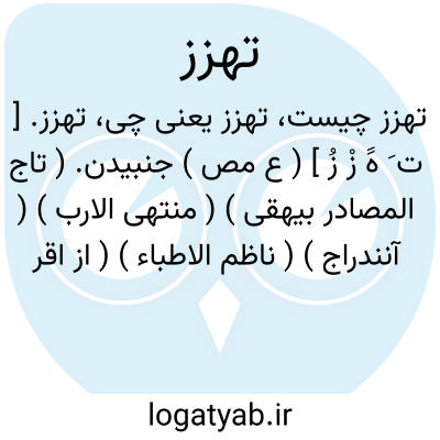 تهزز. [ ت َ هََ زْ زُ ] ( ع مص ) جنبیدن. ( تاج المصادر بیهقی ) ( منتهی الارب ) ( آنندراج ) ( ناظم الاطباء ) ( از اقرب الموارد ).