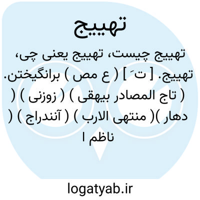 تهییج. [ ت َ ] ( ع مص ) برانگیختن. ( تاج المصادر بیهقی ) ( زوزنی ) ( دهار )( منتهی الارب ) ( آنندراج ) ( ناظم الاطباء ) ( از اقرب الموارد ). برآغالیدن. برآغالانیدن. افژولیدن. انگیختن. ( یادداشت بخط مرحوم دهخدا ). یقال: هیّج بینهما الشر. ( اقرب الموارد ): و قومی که نه بر جاده بودند و تهییج فتن می کرده فرمود تا... ( جهانگشای جوینی ). || حرکت دادن. || خشک کردن باد گیاه را. ( منتهی الارب ) ( آنندراج ) ( ناظم الاطباء ).