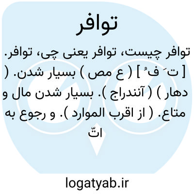 ۱ - ( مصدر ) فراوان شدن بسیار شدن. ۲ - ( اسم ) فراوانی وسعت. جمع: توافرات.