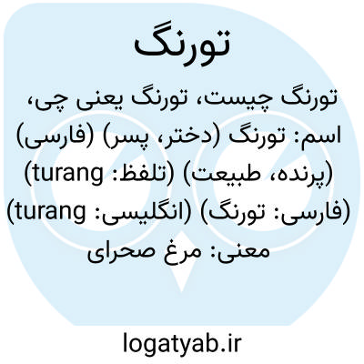 اسم: تورنگ (دختر، پسر) (فارسی) (پرنده، طبیعت) (تلفظ: turang) (فارسی: تورنگ) (انگلیسی: turang)