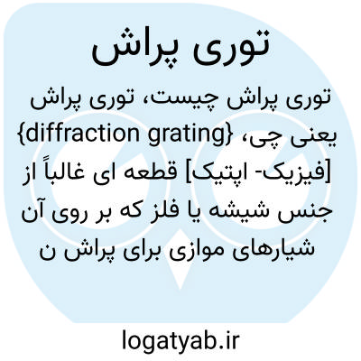 {diffraction grating} [فیزیک- اپتیک] قطعه ای غالباً از جنس شیشه یا فلز که بر روی آن شیارهای موازی برای پراش نور ایجاد شده باشد متـ. توری grating