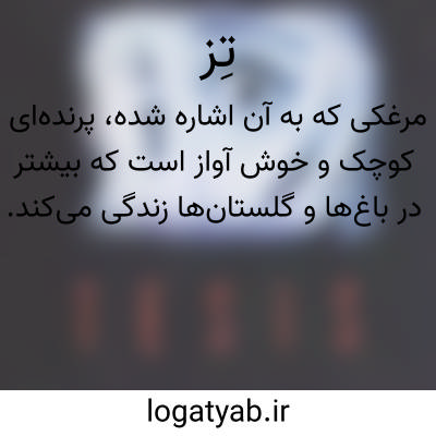 تز. [ ت َ ]( اِ ) مرغکی بود کوچک و لونش خشینه بود و نیک نتواندپریدن و در گلستانها بیشتر بود. ( لغت فرس اسدی چ اقبال ص 170 ). نام مرغی بود که بیشتر در بوستانها بود ونیکو نتواند پرید و آوازک حزین داشته باشد. و در جثه و لون مانند خشینه بود. ( فرهنگ جهانگیری ) ( از فرهنگ رشیدی ). نام مرغکی است خوش آواز و کم سکون و بیشتردر گلستانها می باشد و آنرا به عربی صعوه میگویند. ( برهان ) ( از ناظم الاطباء ). مرغکی است خوش آواز در بوستان آوازی حزین دارد. ( انجمن آرا ) ( آنندراج ). مرغکی باشد کوچک و بانگی برنگ گنجشک کند و برجهنده و نیک نتواند پرید و نشاطی بود و در گلستانها بیشتر بود و نوای خوش زند و در بعضی مواضع آنرا توذ گویند و به زبان اصفهانی ترمذ گویندش. ( فرهنگ اوبهی ):