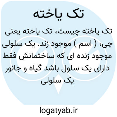 ( اسم ) موجود زند. یک سلولی موجود زنده ای که ساختمانش فقط دارای یک سلول باشد گیاه و جانور یک سلولی آغازی تک سلولی جانورتک سلولی گیاه تک سلولی. جمع: تک یاختگان.