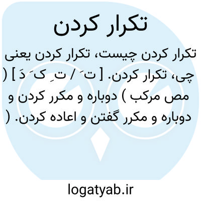 ( مصدر ) ۱ - دوباره کردن عملی را دو یا چند بارانجام دادن. ۲ - دوباره گفتن چند بار گفتن یک مطلب.