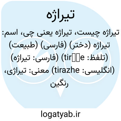 اسم: تیراژه (دختر) (فارسی) (طبیعت) (تلفظ: tirāže) (فارسی: تيراژه) (انگلیسی: tirazhe)