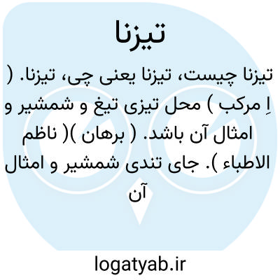 تیزنا. ( اِ مرکب ) محل تیزی تیغ و شمشیر و امثال آن باشد. ( برهان )( ناظم الاطباء ). جای تندی شمشیر و امثال آن چه «نا» به معنی محل است مانند تنگنا و درازنا و فراخنا و پهنا... ( انجمن آرا ) ( آنندراج ). تیزنای. حد. لبه. دم. لب. تیزه. طرف برنده چیزی. ( یادداشت بخط مرحوم دهخدا ): و حد شمشیر، تیزنای او بود. ( تفسیر ابوالفتوح رازی از یادداشت ایضاً ): الغراب؛ تیزنای تبر. ( السامی فی الاسامی از یادداشت ایضاً ):