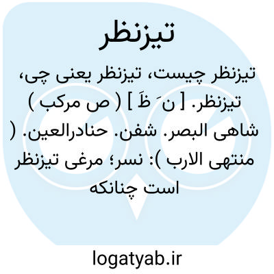 تیزنظر. [ ن َ ظَ ] ( ص مرکب ) شاهی البصر. شفن. حنادرالعین. ( منتهی الارب ): نسر؛ مرغی تیزنظر است چنانکه از چهارصد فرسخ می بیند. ( از منتهی الارب ): تیزنظر باید بود تا بداند که لذت قصوی و انس اعلی آنها راست. ( جهانگشای جوینی ). رجوع به تیز و دیگر ترکیبهای آن شود.