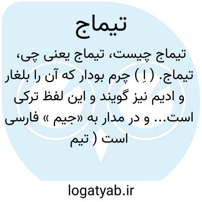 تیماج. ( اِ ) چرم بودار که آن را بلغار و ادیم نیز گویند و این لفظ ترکی است... و در مدار به «جیم » فارسی است ( تیماچ ). ( غیاث اللغات ) ( آنندراج ). چرمی است رنگین و بوی خوش دارد. درشب طلوع سهیل آن را رنگ و بوی حاصل شود. ( شرفنامه منیری ). پوست گوسپند دباغی شده. ( ناظم الاطباء ). قسمی چرم اعلی، مقابل میشن. قسمی پوست پیراسته ستبر و محکم. ( از یادداشتهای بخط مرحوم دهخدا ).