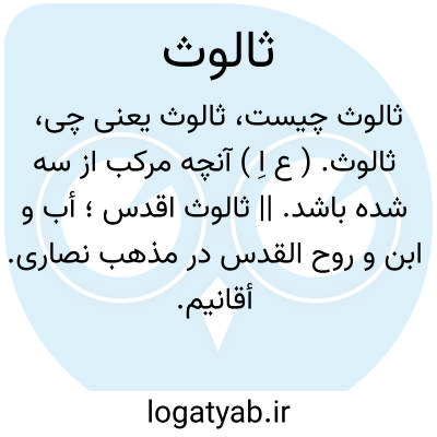 ( اسم ) آنچه مرکب از سه باشد. یا ثالوث اقدس. اب ابن روح القدس ( در آیین نصاری ) اقانیم.