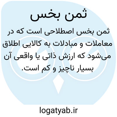 ثمن بخس اصطلاحی است که در معاملات و مبادلات به کالایی اطلاق میشود که ارزش ذاتی یا واقعی آن بسیار ناچیز و کم است. این عبارت معمولاً برای توصیف اشیائی به کار میرود که علیرغم داشتن ظاهری قابل قبول، از نظر کیفیتی یا کاربردی، ارزشی قابل اعتنا ندارند و به همین دلیل، قیمت آنها نیز بسیار پایین تعیین میشود. در واقع، ثمن بخس به معنای بهای اندک یا قیمت ناچیز است و بیانگر کمارزشی یا بیارزش بودن کالا یا خدمت مورد نظر است.