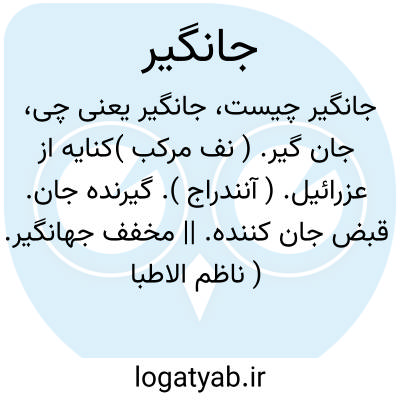 جان گیر. ( نف مرکب )کنایه از عزرائیل. ( آنندراج ). گیرنده جان. قبض جان کننده. || مخفف جهانگیر. ( ناظم الاطباء ).